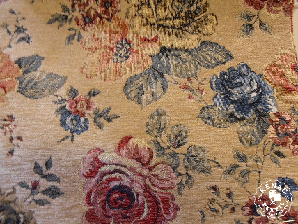Luxus minőségű, nagy kopásállóságú, virágmintás bútorszövet.